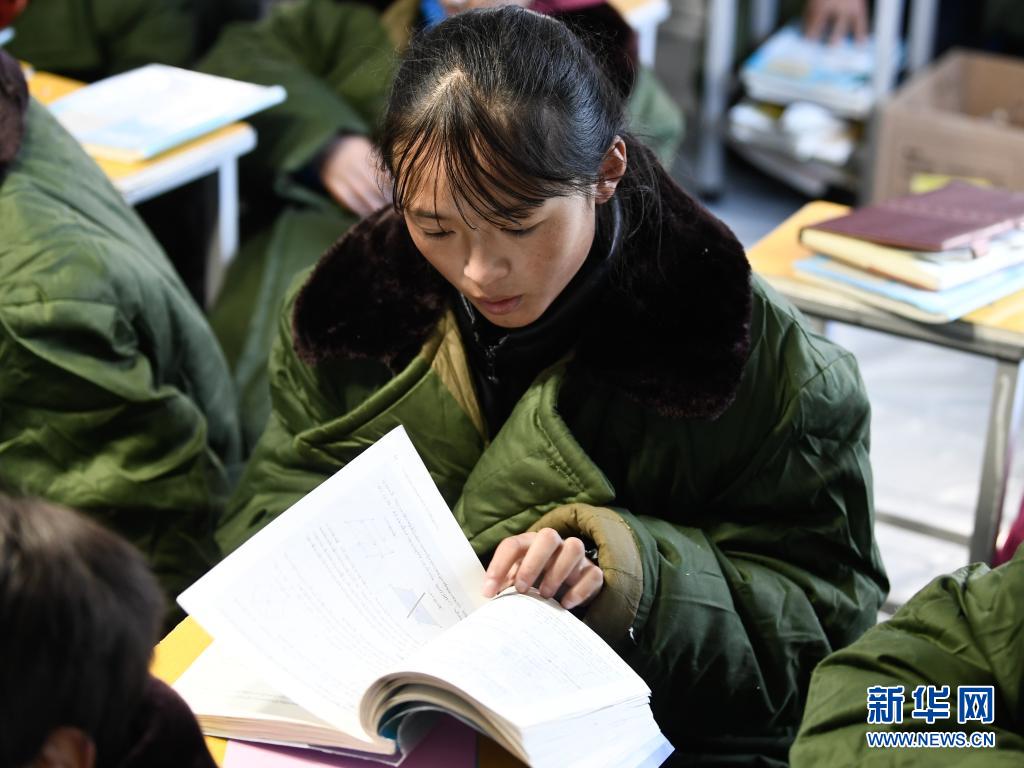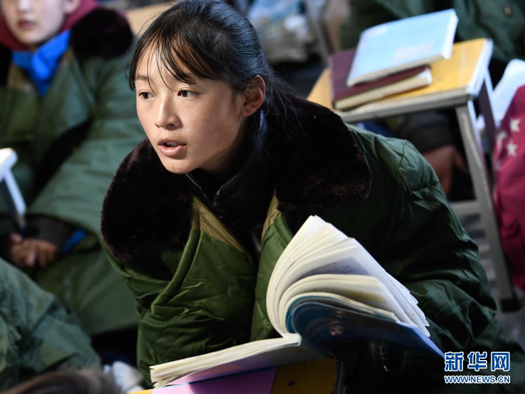 5月24日,曲邁卓瑪在瑪多縣民族寄宿制中學(xué)帳篷教室里讀書(shū)。新華社 張龍 攝