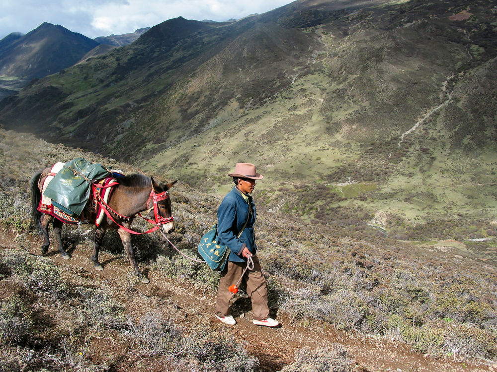 2005年9月27日,王順友行走在“馬班郵路”上(中國(guó)郵政集團(tuán)有限公司四川省分公司供圖)。