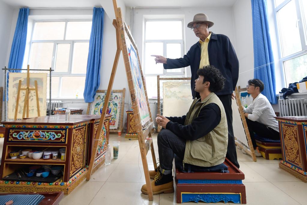 唐卡是藏族文化中獨(dú)具特色的繪畫藝術(shù)形式,具有鮮明的民族特點(diǎn),被稱為藏族的“百科全書”,也是中華民族彌足珍貴的非物質(zhì)文化遺產(chǎn)。2001年,青海民族大學(xué)藝術(shù)學(xué)院創(chuàng)辦全國首個(gè)工藝美術(shù)(唐卡)專業(yè),將傳統(tǒng)民間藝術(shù)納入大學(xué)教學(xué)體系,實(shí)現(xiàn)從民間師徒傳承模式向?qū)W校教學(xué)模式的轉(zhuǎn)變,為傳統(tǒng)民族文化培養(yǎng)人才,更好地傳承非遺文化。