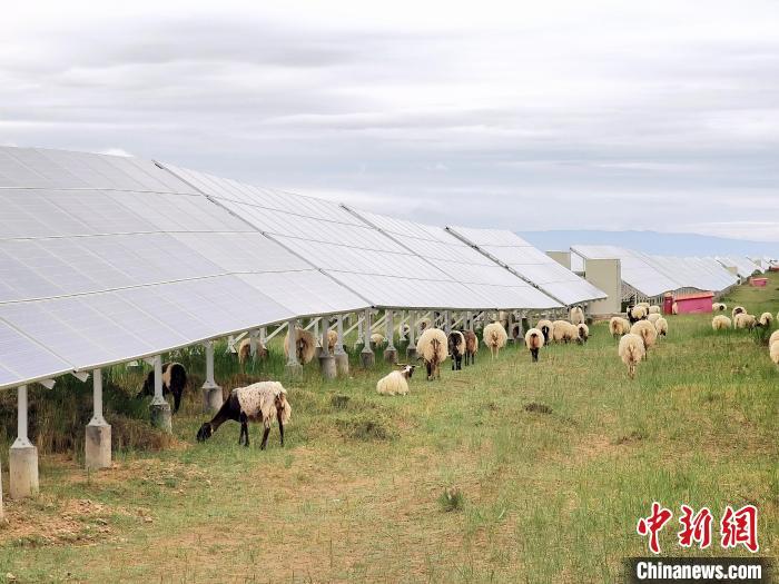 “光伏電站建設(shè)在這里,成批量鋪設(shè)的光伏板使得園區(qū)風速減小,蒸發(fā)量下降,空氣濕度增加,草地涵水量大增,在一定程度上遏制了荒漠化的擴大延伸?!?7日,青海省海南藏族自治州塔拉灘光伏產(chǎn)業(yè)園區(qū)的工作人員對記者說。
