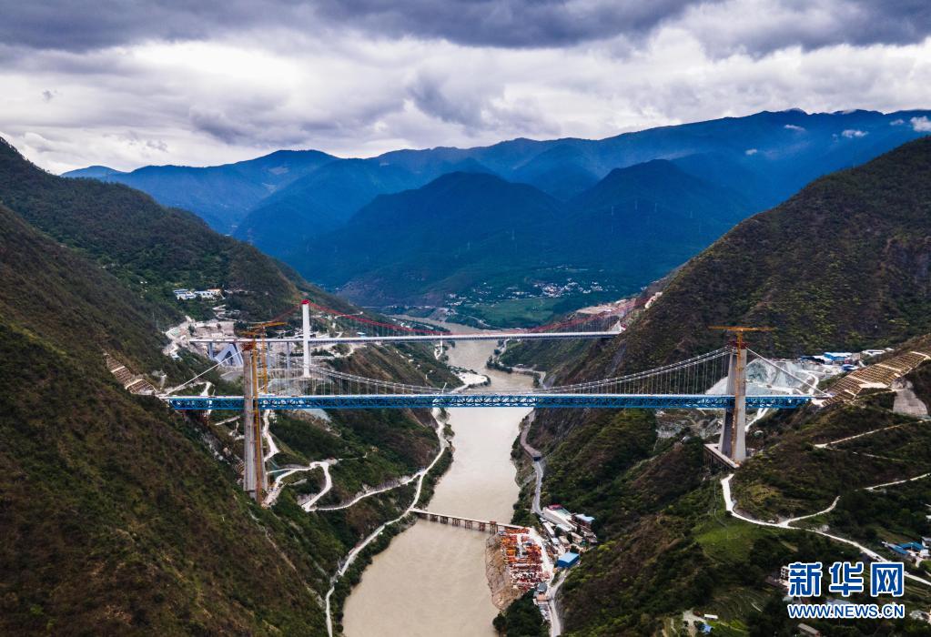 6月24日拍攝的麗香鐵路金沙江特大橋(無人機照片)。新華社記者 王冠森 攝