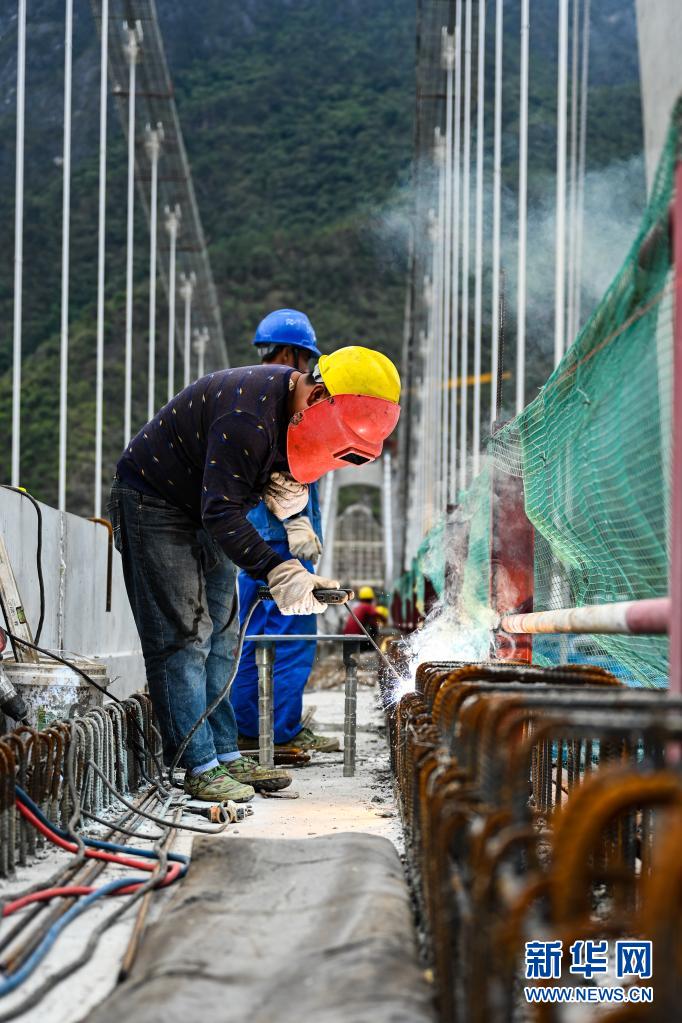 6月24日,施工人員在麗香鐵路金沙江特大橋上作業(yè)。新華社記者 王冠森 攝