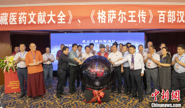 7月8日,四川成都,嘉賓共同啟動《藏醫(yī)藥文獻大全》《格薩爾王傳》百部漢譯工程。中新社記者 劉忠俊 攝