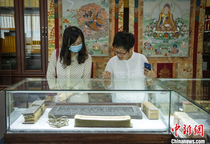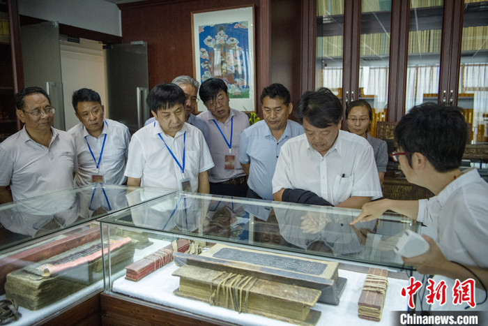 7月8日,四川成都,嘉賓們走進《格薩爾》資料中心參觀館藏文物。中新社記者 劉忠俊 攝