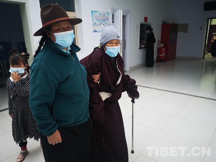 圖為拄著拐杖前來問診的窩賽鄉(xiāng)牧民