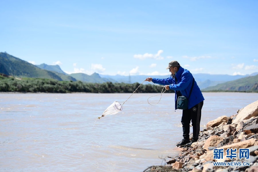 2021年長江源綜合科考的科考隊(duì)員殷大聰在采集浮游生物(7月22日攝)。新華社記者 張龍 攝