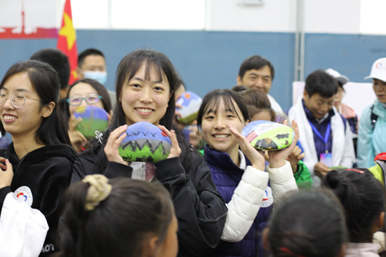 活動現(xiàn)場,福利學(xué)校的孩子們將親手制作的石頭畫送給成長營的小老師們。受訪者供圖