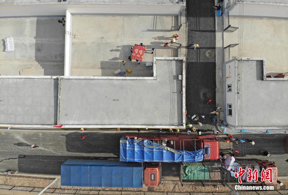 8月7日,甘肅省舟曲縣首批60戶289名地質(zhì)災(zāi)害避險搬遷村民到達(dá)蘭州新區(qū)并入住。甘肅舟曲縣啟動地質(zhì)災(zāi)害避險搬遷工作,第一批次60戶289人集中告別故土,乘車前往數(shù)百公里之外的蘭州新區(qū)。(無人機(jī)拍攝) 中新社記者 楊艷敏 攝