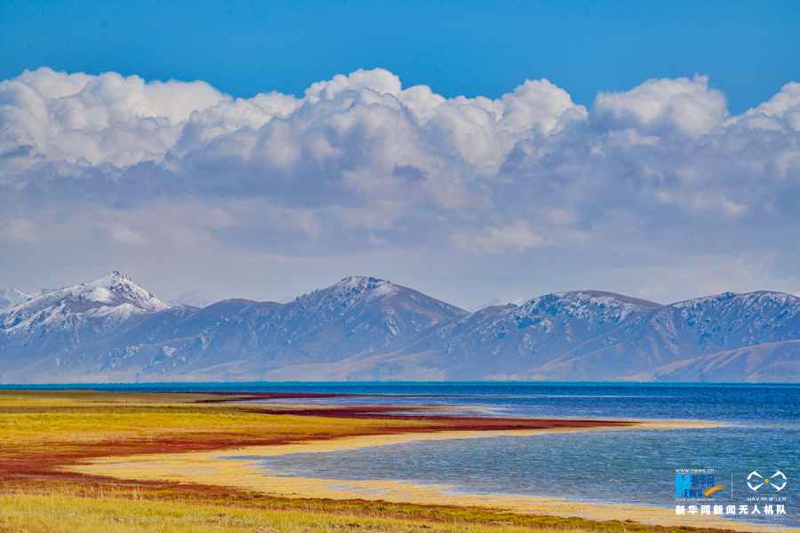 冬格措納湖位于青海省果洛藏族自治州瑪多縣境內(nèi),海拔4000米以上。秋日的冬格措納湖,湖水湛藍(lán)、天空遼闊,湖畔的草地紅綠黃交融,一幅大自然的美麗畫卷在這里展開。新華網(wǎng) 宋忠勇 攝