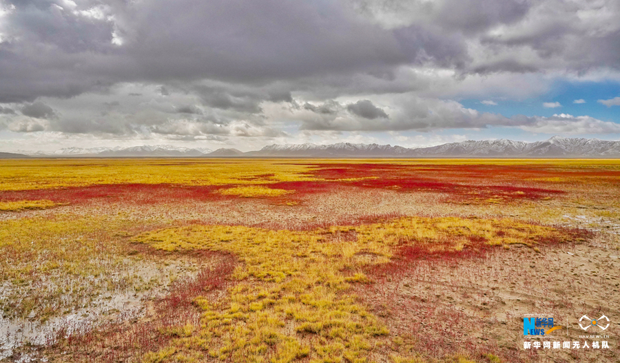 彩色的草原,讓冬格措納湖猶如童話世界。新華網(wǎng) 宋忠勇 攝