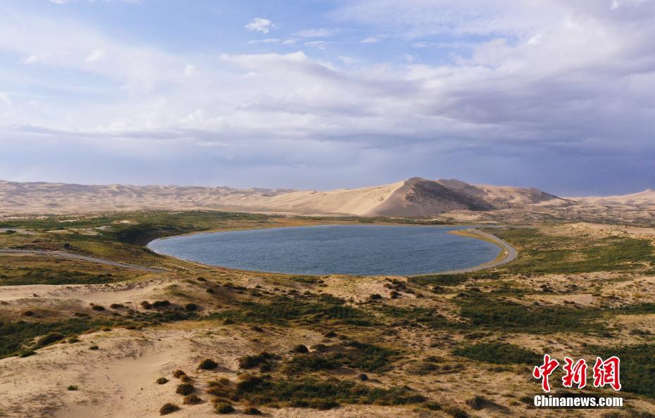 9月27日,航拍青海省海北藏族自治州海晏縣關(guān)停的青海湖沙島景區(qū)內(nèi)的太陽湖。(無人機照片) 中新社記者 馬銘言 攝