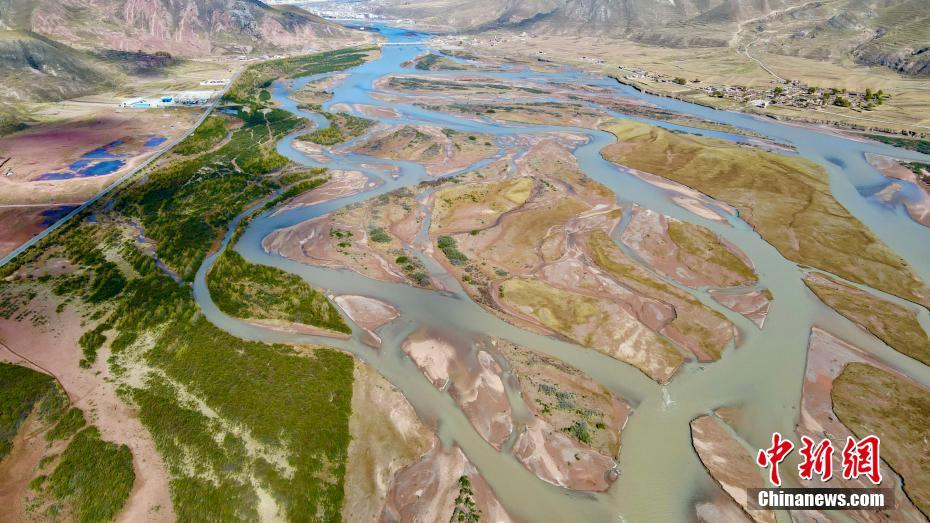 10月18日,航拍秋日的青海玉樹藏族自治州囊謙縣瀾滄江網狀水系,縱橫交錯的水系,與周圍秋季泛黃的草原相襯,勾勒出了一幅絢麗畫卷。中新社記者 李江寧 攝