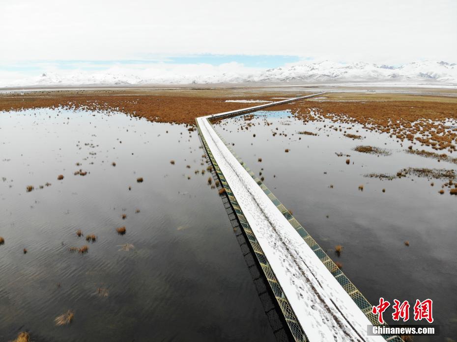 10月20日,四川省阿壩州若爾蓋大草原雪后銀裝素裹。從19日晚間起,若爾蓋縣境內(nèi)迎來降雪,花湖生態(tài)旅游區(qū)被皚皚白雪覆蓋,美輪美奐?;ê屈S河(若爾蓋段)的重要水源涵養(yǎng)地,也是若爾蓋濕地國家級(jí)自然保護(hù)區(qū)的“實(shí)驗(yàn)區(qū)”的一部分,自保護(hù)工作開展以來,花湖自然水位提高30厘米,濕地湖泊面積從原來的215公頃擴(kuò)大到650公頃,恢復(fù)湖泊周邊半沼澤和干沼澤892公頃。