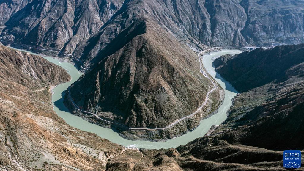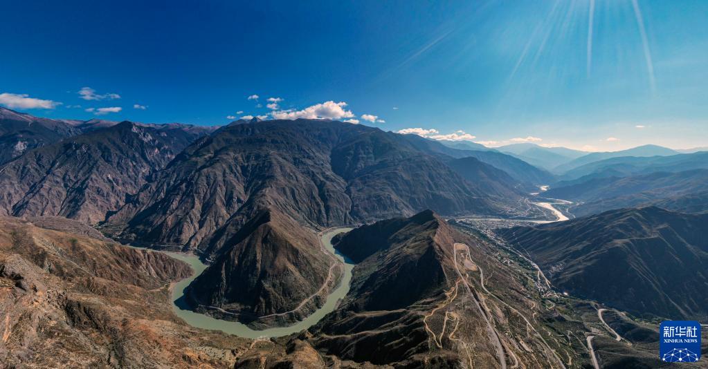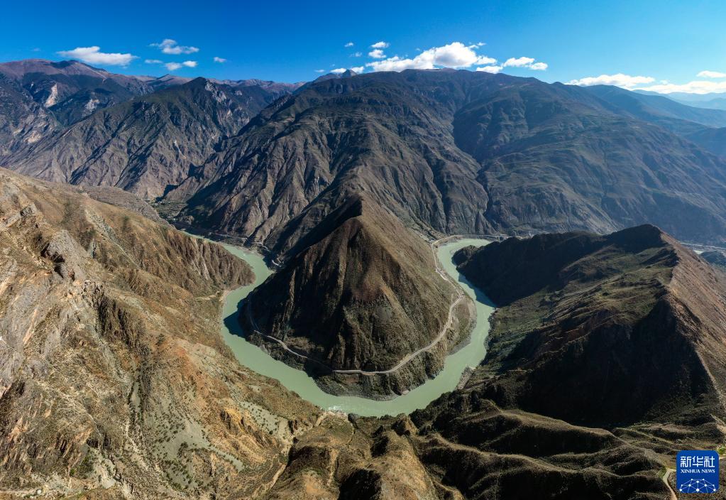 10月27日拍攝的金沙江大灣(無人機全景照片)。新華社記者 江文耀 攝