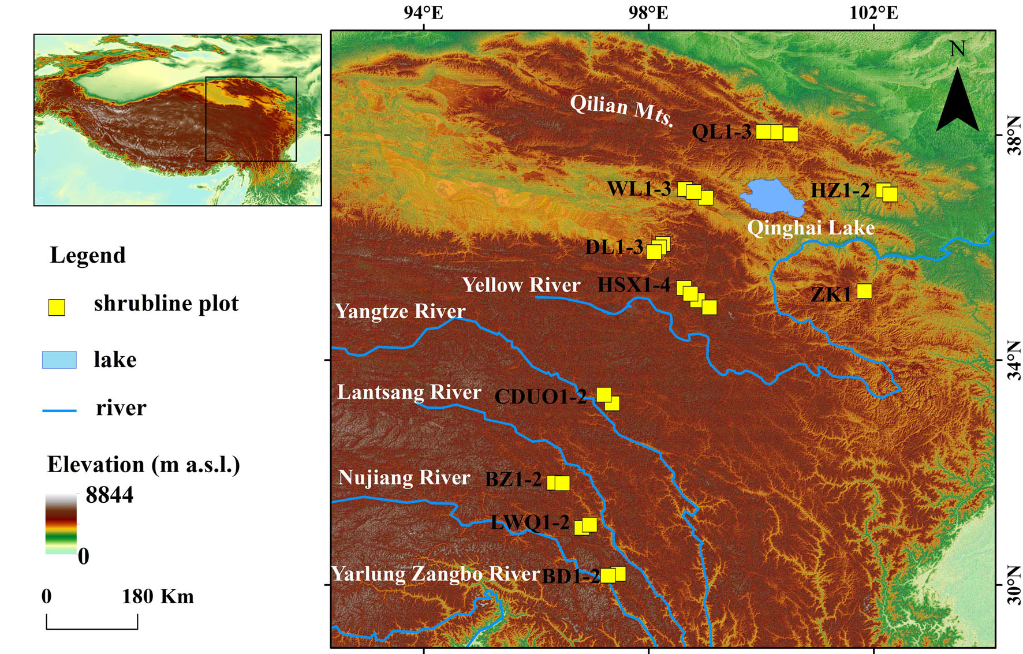 文章通訊作者、中科院青藏高原所研究員梁爾源介紹,高山灌木線是指灌叢分布的海拔邊界上限,被認為是探索高寒生態(tài)系統(tǒng)對全球變化響應與適應的天然實驗室和全球變暖的“預警線”。