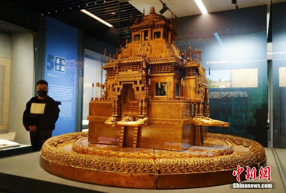 11月29日,位于青海省西寧市的青海省博物館展出木雕壇城。當(dāng)日,青海省博物館經(jīng)一年半升級改造后開館并舉辦“1+3”主題展覽,160件藏品首次亮相。該展覽以青海歷史文物為主,青海非物質(zhì)文化遺產(chǎn)、考古成果、百年革命文物為輔,多角度展現(xiàn)地域歷史及民族文化。據(jù)了解,升級后的博物館上展文物1331件(套)/2405件,其中一級文物191件,珍貴文物248件(套),上展文物體量為青藏高原最大。 中新社記者 馬銘言 攝