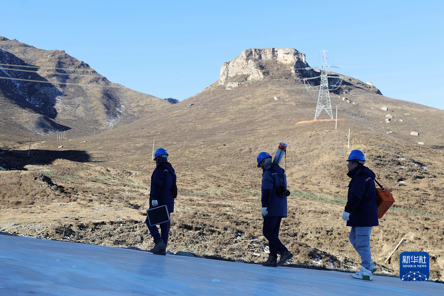 1月19日,國家電網(wǎng)青海省電力公司檢修公司輸電檢修中心專業(yè)班組成員在巡線途中。新華社記者 趙玉和 攝