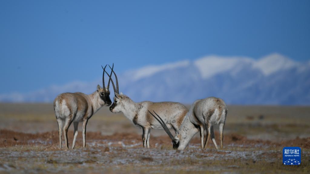 2022年1月20日在可可西里拍攝的藏羚羊。新華社 潘彬彬 攝
