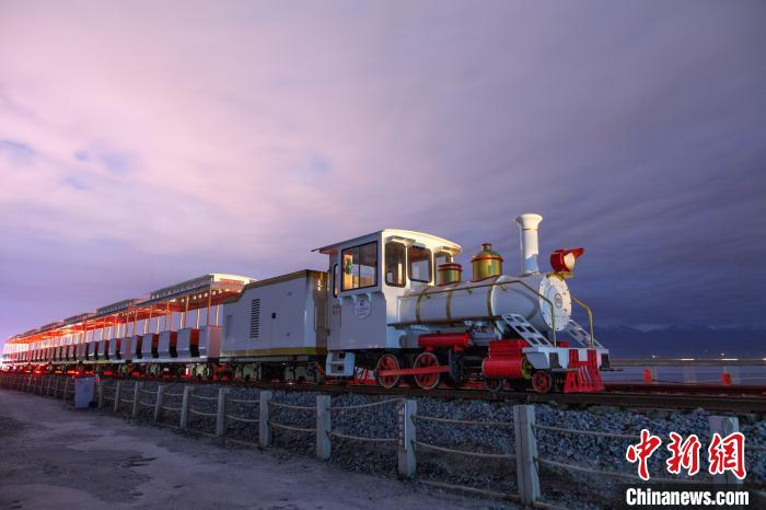 圖為夜色籠罩下茶卡鹽湖的小火車。黃丹丹 攝