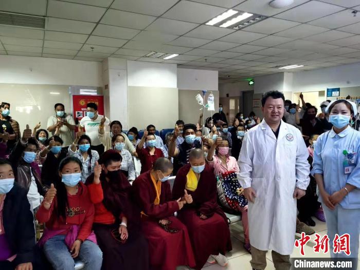 王文濤與藏族患者在一起。受訪者供圖