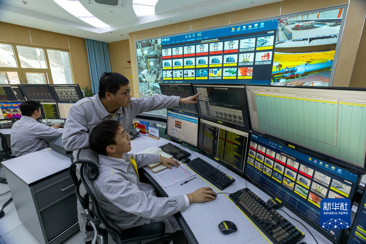 3月17日,在雅礱江兩河口水電站中控室,值班員利用智能監(jiān)控系統(tǒng)監(jiān)測水電站運(yùn)行情況。新華社記者 沈伯韓 攝