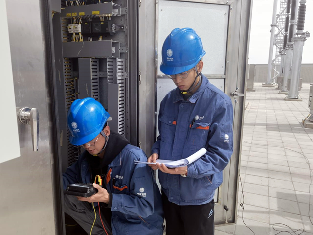 變電檢修人員對設(shè)備開展細致驗收。李斌 攝