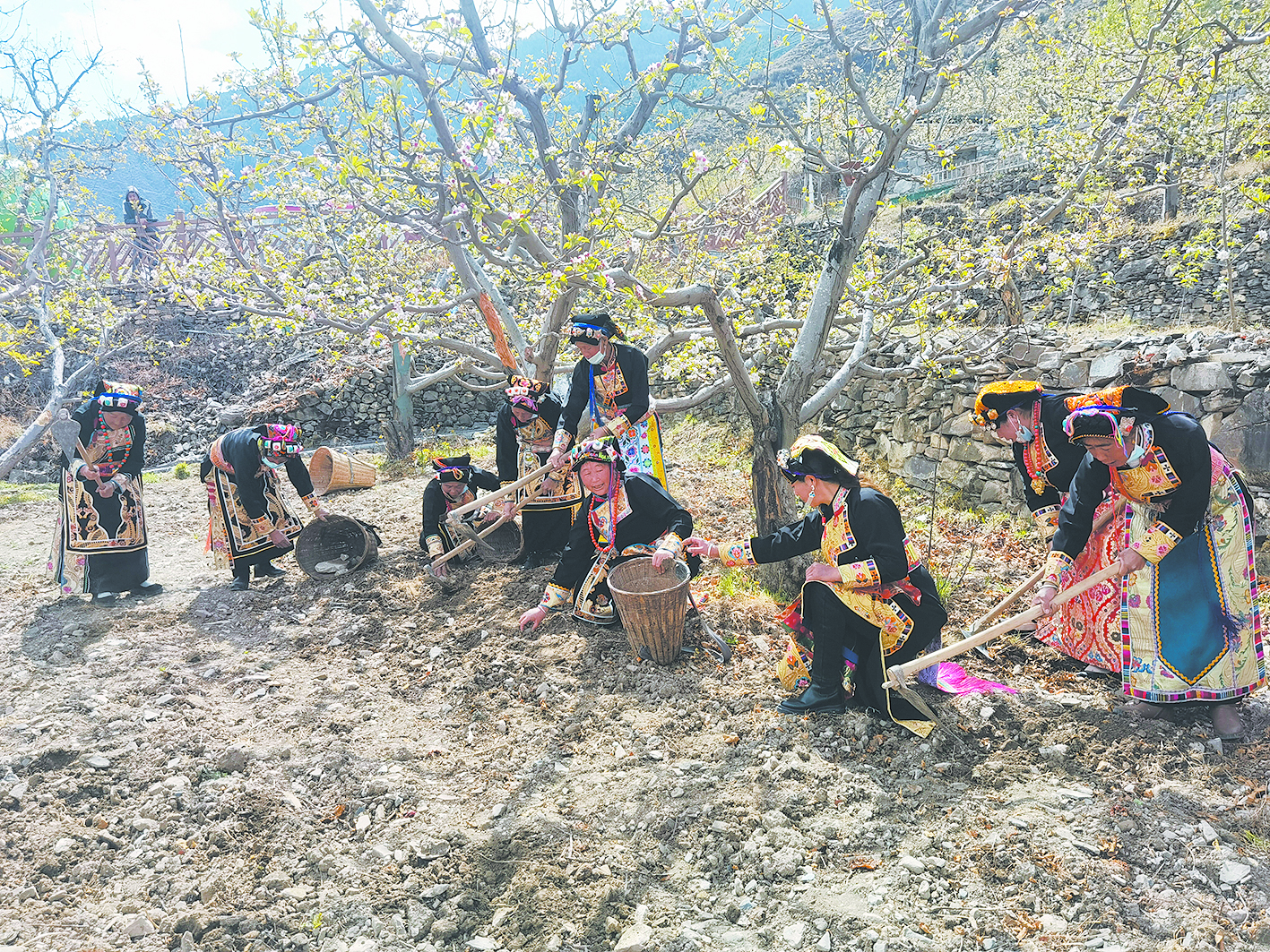 “老百姓看到蘋果花就看到了希望,期待蘋果產(chǎn)量高,品質(zhì)更好,能賣個(gè)好價(jià)錢,讓我們的日子越來越紅火?!贝迕裰鞂W(xué)燕邊忙碌邊告訴記者。眼下正是蘋果樹急需補(bǔ)充營(yíng)養(yǎng)的時(shí)候,同朱學(xué)燕一般,在蘋果樹下,村民們正忙著施肥、松土、拔草、澆水。
