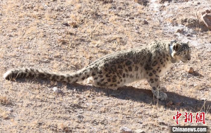 圖為佩戴衛(wèi)星追蹤項圈的雪豹被放歸。祁連山國家公園青海省管理局供圖
