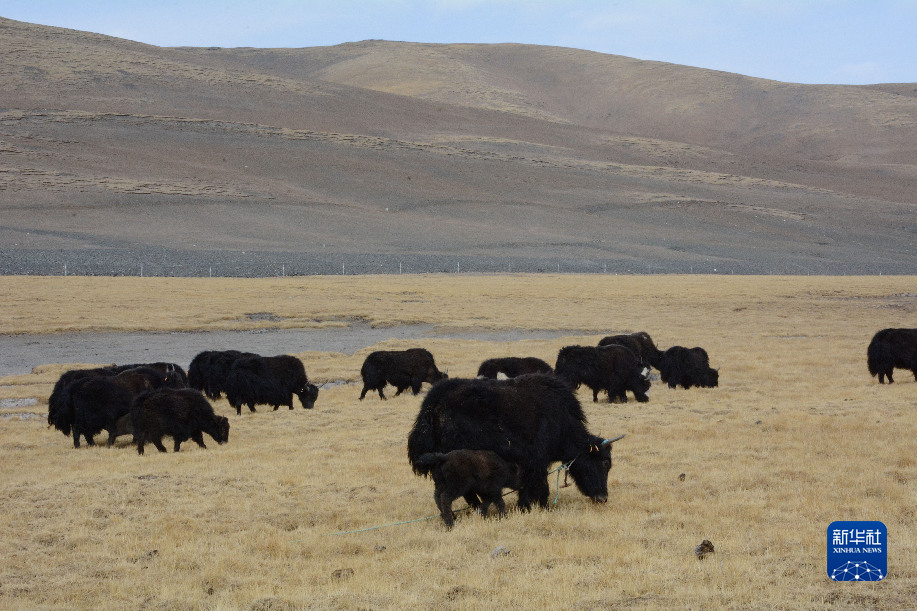 谷雨已過,位于青海省玉樹藏族自治州曲麻萊縣曲麻河鄉(xiāng)的昂拉村最低氣溫依舊徘徊在零下5攝氏度左右。微黃的草山連綿起伏,藍(lán)天白云間,疾風(fēng)不時呼嘯而過,點點“黑珍珠”點綴在草山間,“這些‘黑珍珠’是良種牦牛,這可是我們村的致富寶貝?!辈哦〖油萆缴系年笈?,滿眼希冀。