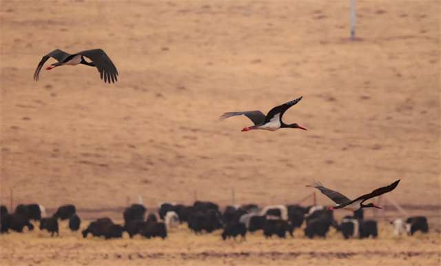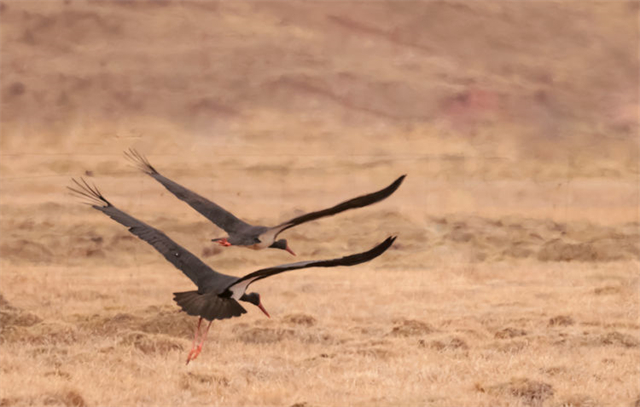 黑鸛現(xiàn)身祁連山國家公園。周元峰 攝