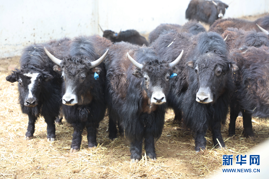 在天峻縣陽(yáng)康鄉(xiāng)牦牛核心群培育基地內(nèi),工作人員在給牦牛投放飼草。新華網(wǎng) 吳婷婷 攝