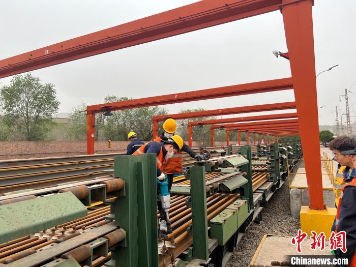 圖為職工正在擺放長(zhǎng)軌。張遠(yuǎn) 攝