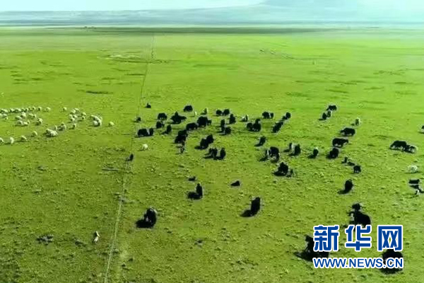 海南州興海縣一處牧場上牛羊在覓食。新華網發(fā)