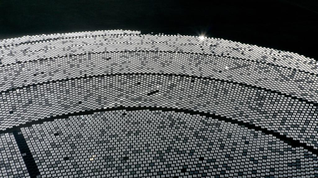 這是2021年3月3日拍攝的位于青海省海南藏族自治州共和縣光伏產(chǎn)業(yè)園內(nèi)的一處塔式光熱發(fā)電項目(無人機(jī)照片)。新華社記者 張宏祥 攝