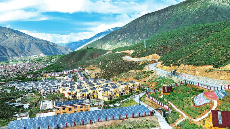 這里是巴塘縣實(shí)施地巫鎮(zhèn)易地扶貧搬遷集中安置項(xiàng)目時(shí)打造的新村。曾經(jīng),地巫鎮(zhèn)中真、甲雪、壩伙3個(gè)村位于離縣城149公里的大山深處,平均海拔3600米,地質(zhì)條件較為惡劣。如今,村里的群眾整體搬遷到“桃源地塢”新村,新房水、電、路等基礎(chǔ)設(shè)施一應(yīng)俱全。家家戶戶的屋頂上,還有雙流區(qū)捐建的分布式村級光伏扶貧電站,這讓村民們又多了一份收入。