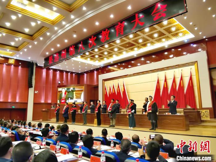 圖為青海省果洛州第八次教育大會現(xiàn)場。張?zhí)砀?攝