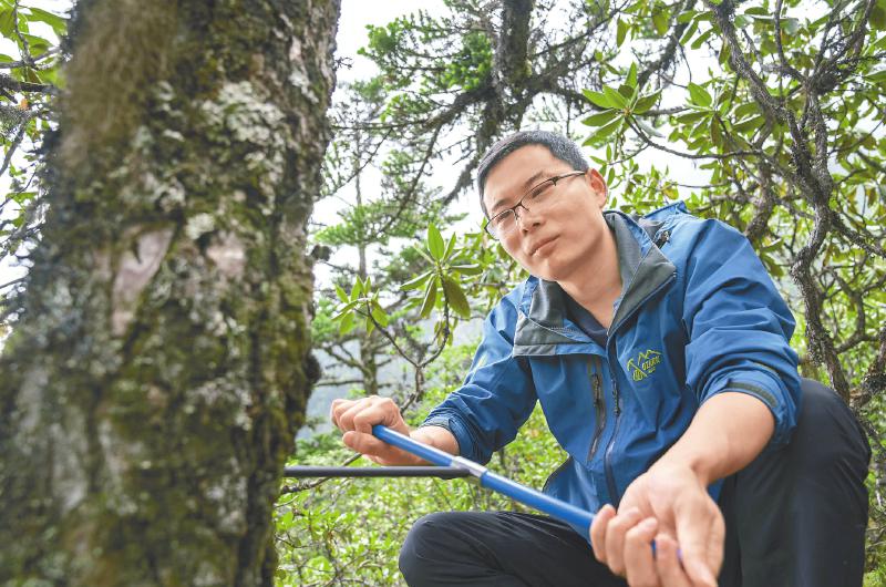 山間氣候多變,不一會(huì)兒林間下起了大雨?!霸谀銈儊?lái)之前,這里已經(jīng)連續(xù)一周大晴天,這在雨季是少見的?!背H鹩⒄f(shuō),經(jīng)過(guò)30多年的連續(xù)觀測(cè),他們發(fā)現(xiàn)高山地帶增溫很快,同期降水在減少,他們稱這為“暖干化”趨勢(shì)。