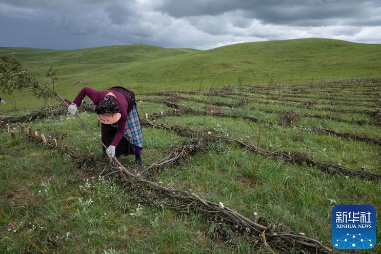從五月底開始,四川省若爾蓋縣麥溪鄉(xiāng)黑河村村民在當(dāng)?shù)卣M織下,抓住雨水季節(jié)的有利時(shí)機(jī),在草場(chǎng)開展防沙治沙工作。