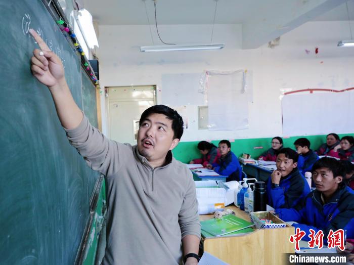 圖為丁志偉正在給學生講課。上海市援青干部聯(lián)絡(luò)組供圖