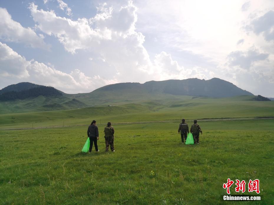 圖為生態(tài)管護(hù)員在草原撿拾垃圾。張?zhí)砀?攝