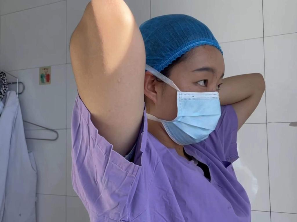 “第一回進(jìn)手術(shù)室,非常緊張!”桑周拉毛換好手術(shù)服后,對(duì)著鏡子把頭發(fā)扎緊。然后,她按照手術(shù)室麻醉醫(yī)生的要求,把耳邊的碎發(fā)一絲不茍地塞進(jìn)帽子,然后轉(zhuǎn)身走進(jìn)了手術(shù)室。