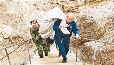 上橋,有兩條路線:一是開車走盤山“搓板路”,路遠(yuǎn)難行還危險(xiǎn);二是徒步爬一條直通橋上的水泥臺(tái)階,150級(jí),坡度近70度,被執(zhí)勤部隊(duì)官兵形容為“天梯”。高海拔下,二十來歲的年輕戰(zhàn)士,走“天梯”都會(huì)頭暈?zāi)垦?,?976年生人的葛軍,為節(jié)省時(shí)間,每次都選擇扛著郵包往上爬。