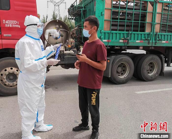 圖為吳遠(yuǎn)孝在高速卡口對(duì)進(jìn)入德令哈市區(qū)的車貼封條。 吳遠(yuǎn)孝 供圖