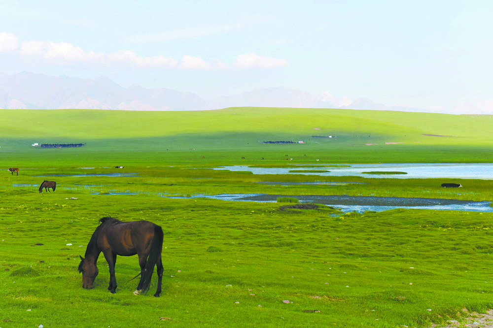 走進(jìn)祁連山南麓,遼闊草原鋪展在天地間。成群的牛羊猶如散落的一串串黑白珍珠??粗矍暗木跋?,牧民扎拉加感慨萬千。