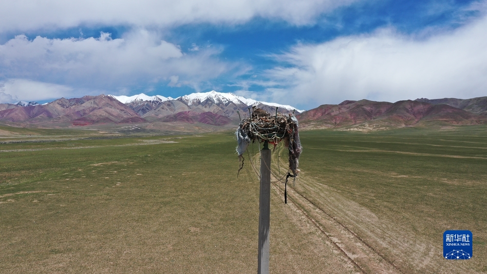 記者在草原上,不時(shí)能見到一根根五六米高的水泥桿,桿上筑有鳥巢或六邊水泥方臺(tái)。當(dāng)?shù)毓ぷ魅藛T介紹,這是人工架設(shè)的“招鷹架”,吸引老鷹等猛禽前來?xiàng)ⅰ⒅?,達(dá)到控制鼠群的目的。