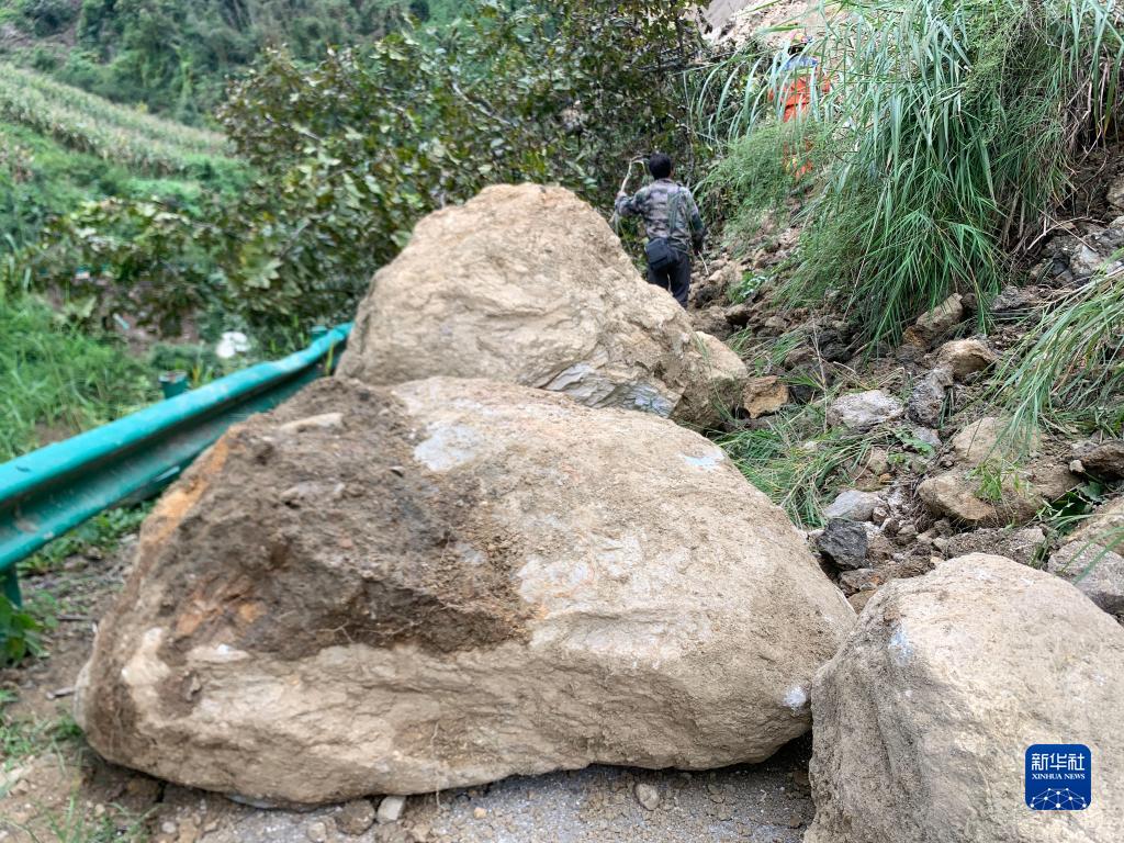 9月7日在雅安市石棉縣王崗坪彝族藏族鄉(xiāng)拍攝的損毀道路。新華社記者 才揚(yáng) 攝