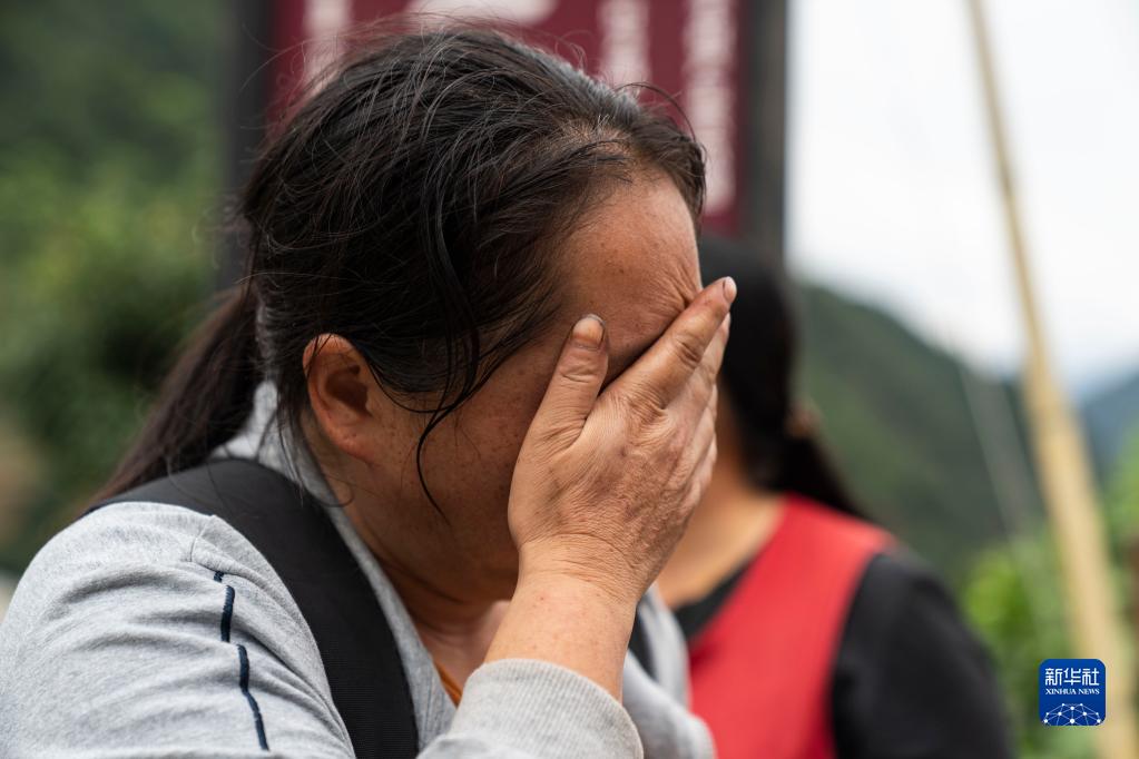 9月7日,在雅安市石棉縣王崗坪彝族藏族鄉(xiāng)幸福村二組,一名村民在哭泣。新華社記者 才揚(yáng) 攝