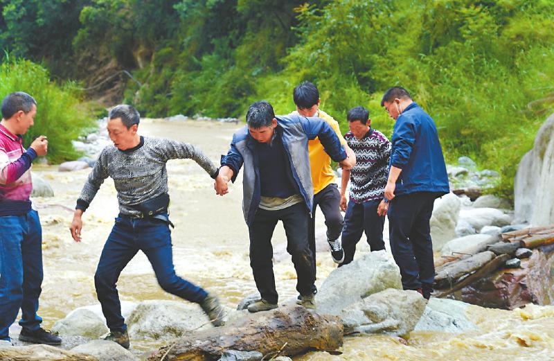 沿途有3個幾近垂直的斜坡,一行人只能緩緩下蹲、降低重心移過去。還有布滿泥沙和落石的河流,雖然有橋,但并不安全。“我們撿來木板、樹干和石頭,搭起簡易通道,才成功渡過。”李龍說。