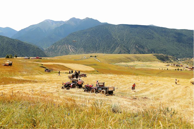 迎來(lái)豐收季,白玉縣機(jī)械化收割青稞。 本版圖片均由司法廳提供