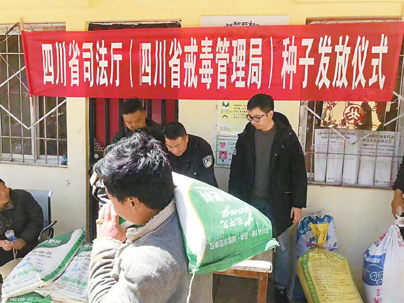 司法廳免費(fèi)向白玉縣村民發(fā)放種子和化肥。